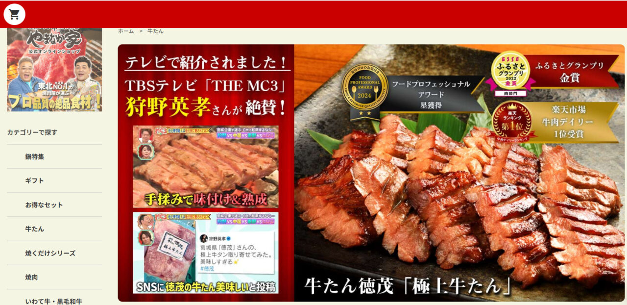 東北エリアで60店舗以上を展開する実力派ブランド。実店舗で提供されている牛たんの味を家庭でも再現できる通販商品が高く評価されています。