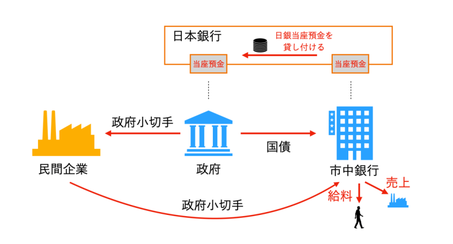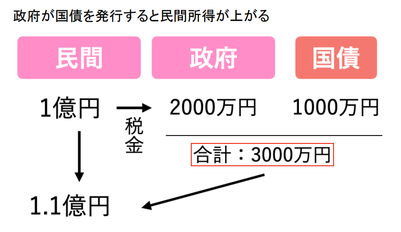 政府が借金をすると民間のお金が増える仕組みになっています。