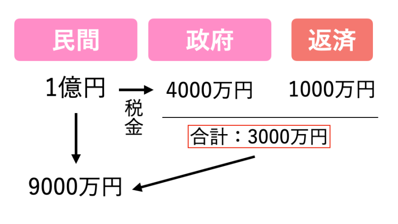 もし、政府が民間から集めた税金を使って国債の返済を行うと、